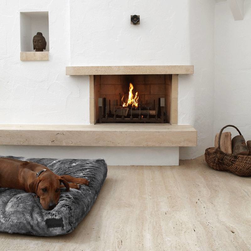 Hondenkussen Felpa is heerlijk warm dankzij het nepbont. De zachte luxe die het nepbont biedt, is niet alleen voor je hond comfortabel maar zorgt ook voor een luxe uitstraling in je woonkamer. De hoes kan gemakkelijk verwijdert worden dankzij een handige rits. De hoes kan in de wasmachine gewassen worden. Het kussen is speciaal ontworpen om je hond maximaal te ondersteunen. De voorgevormde holte in het midden zorgt ervoor dat de natuurlijke kromming van het lichaam van je hond goed wordt ondersteunt. Het hoofd ligt comfortabel op de hogere buitenrand. Het kussen is gemaakt van een speciaal soort foam waardoor hij stabiel en elastisch blijft.